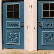 Utsmyckning utförd på dörr. Arbetet är anpassat efter dörrens uttryck och platsens karaktär.