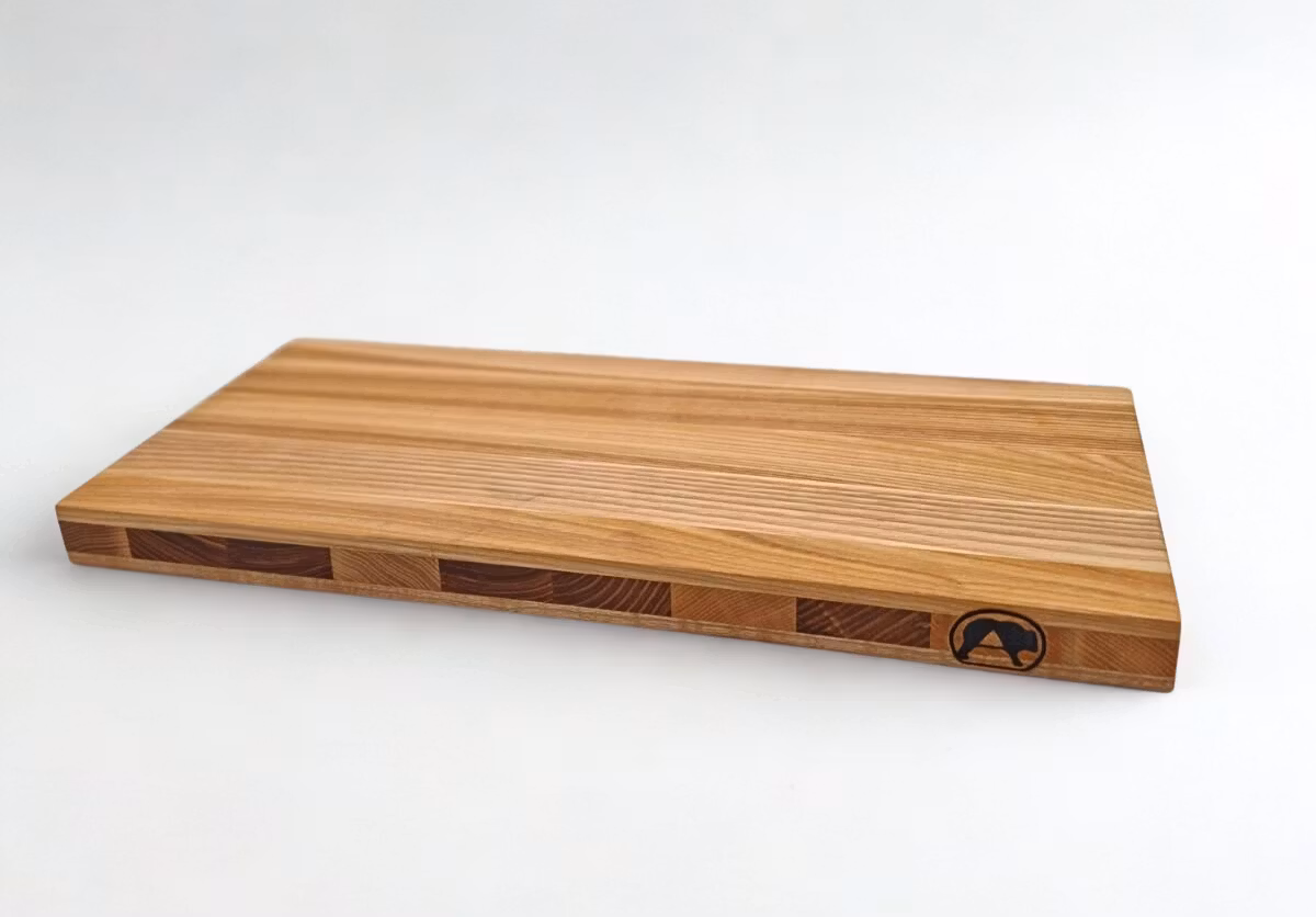 En vackert stavlimmad skärbräda i ask, uppbyggd i 3 stabila skikt för extra hållbarhet och formstabilitet. Den ljusa askstrukturen ger ett fräscht och naturligt